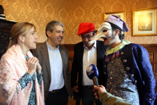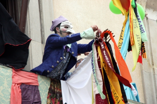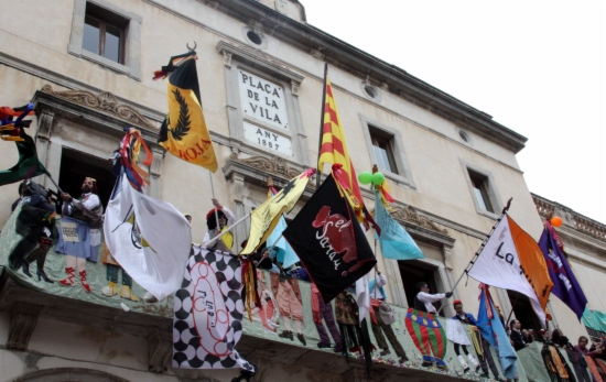Com cada any, el balcó de l’ajuntament, que també ha estat objectiu durant la guerra de caramels, ha rebut nombroses autoritats entre les que aquest any ha destacat el portaveu del Govern, Francesc Homs. També hi ha assistit altres representats polítics com el coordinador general de CDC, Josep Rull; el diputat del PP, Enric Millo; o gent del món cultural com Isona Passola, presidenta de l’Acadèmia del Cinema Català, a banda de personalitats del món periodístic.