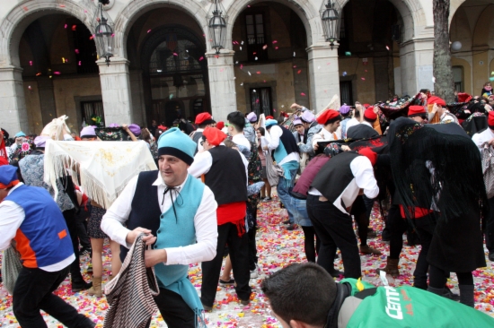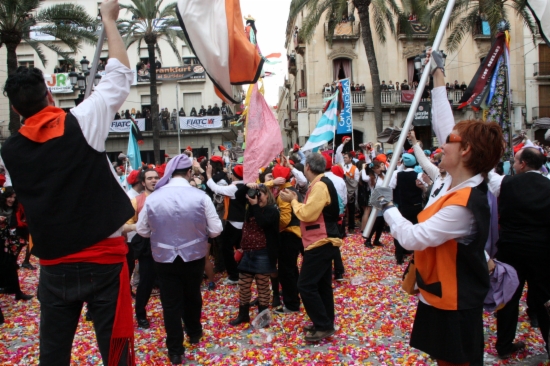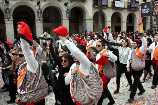 [dropcap]V[/dropcap]ilanova i la Geltrú viu aquest diumenge un dels actes més singulars del seu carnaval, les Comparses. Al crit de ‘Comparsers! La plaça és vostra!’, milers de vilanovins vestits amb barretines i mantons s’han abocat a la Plaça de la Vila i han participat en una de les guerres més dolces, la de caramels. Enguany hi ha participat 5.500 parelles i més d’11.000 persones, representades per 112 banderes. En total, s’hi han llançat 130.000 quilos de dolços. La disbauxa i la sàtira es va apoderar de la capital del Garraf el Dijous Gras i la festa s’allargarà fins Dimecres de Cendra, amb l’enterrament del Rei Carnestoltes. Es calcula que més de 150.000 persones visitaran la ciutat durant aquests dies.