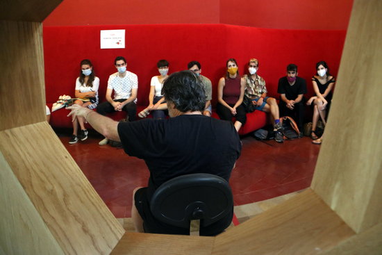 Szpunzberg comentava abans de començar la seva sessió com ha trobat a faltar fer classes presencials, després de quatre mesos abocada a formacions en línia. I reivindicava la presencialitat al teatre, a les aules i a les sales: “És la idiosincràsia del nostre art, i aquestes classes ara són com un regal després d’aquests mesos de dificultats i incertesa”. El teatre filmat? “És una altra cosa, no és teatre; el teatre implica convivència, una mirada lliure, i estar davant d’una peça compartint el jo amb altres, també té una idiosincràsia política: no ho pot substituir l’audiovisual”, apunta l’autora.