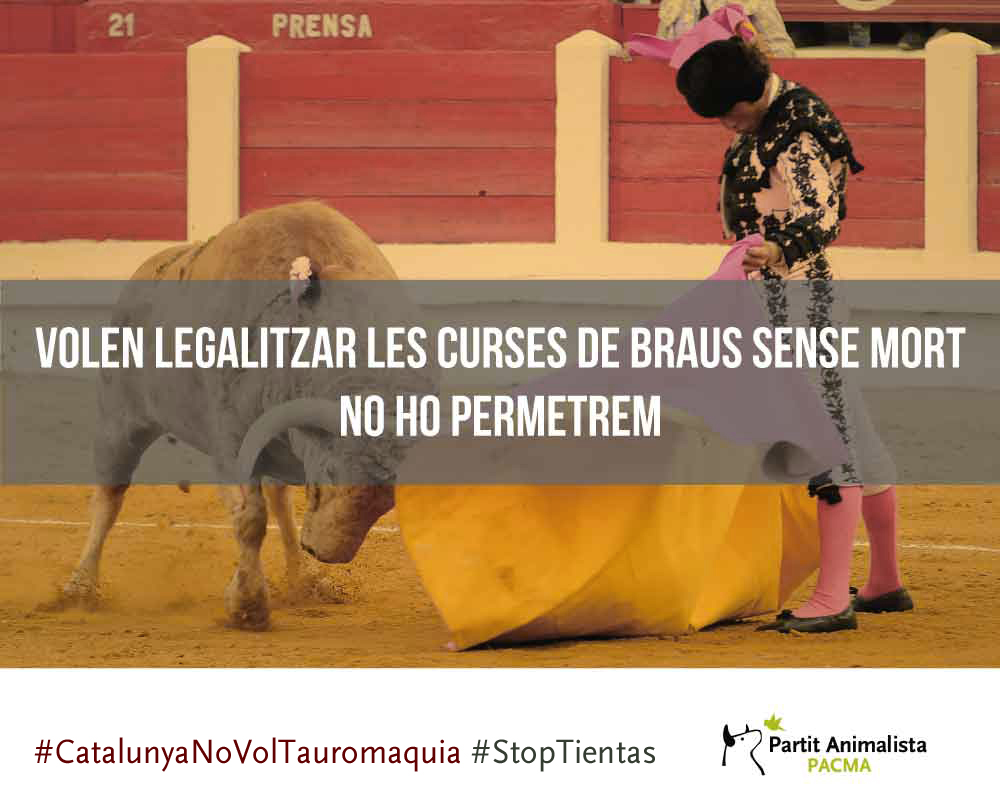 En un comunicat, el partit animalista diu que pretenen canviar la legislació “per la porta del darrera” a l’esquena dels ciutadans “que va manifestar el seu rebuig a les curses de braus en l’any 2010”. Segons PACMA es tracta d’un pas enrere en relació a la legislació vigent de la tauromàquia a Catalunya “pionera en protecció animal i que no pot permetre la tornada de les curses de braus”, encara que siguin “tentes” (proves pensades per testejar els vedells que posteriorment seran venuts per a la pràctica de les curses de braus.). Unes pràctiques que “encara que no suposin la mort dels animals impliquen patiment físic i psicològic” i, asseguren, “són un tipus d’espectacles lucratius que es duen a terme a les Terres de l’Ebre, generant benefici econòmic a ramaders i al mateix govern”. Desde PACMA exigeixen als parlamentaris que “per coherència, posin fi a tots els espectacles taurins, “tentes” i correbous”.