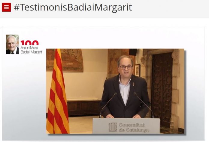 El president de la Generalitat, Quim Torra, inicia la sèrie de vídeos #TestimonisBadiaMargarit que ha impulsat la Direcció General de Política Lingüística per celebrar l’Any Badia i Margarit, en honor de qui fou filòleg, acadèmic i primer rector democràtic de la Universitat de Barcelona, Antoni Maria Badia i Margarit. Els vídeos, protagonitzats per personalitats vinculades al món de la cultura, la llengua i la universitat, s’aniran difonent a les xarxes socials setmanalment i es publicaran també a la pàgina de l’Any Badia i Margarit.